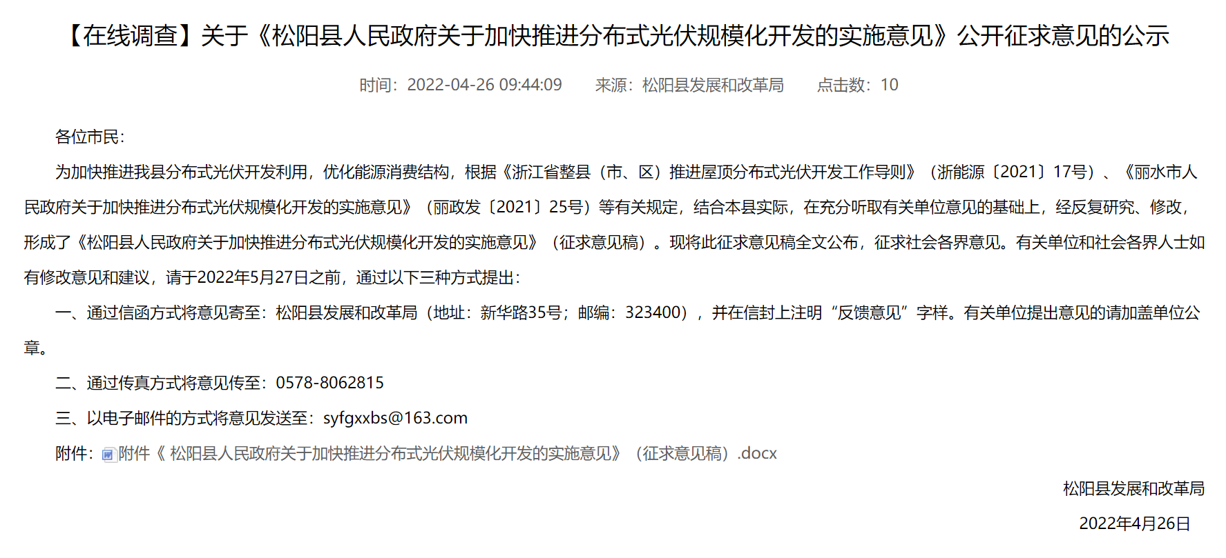 松陽縣人民政府關于加快推進分布式光伏規(guī)?;_發(fā)的實施意見