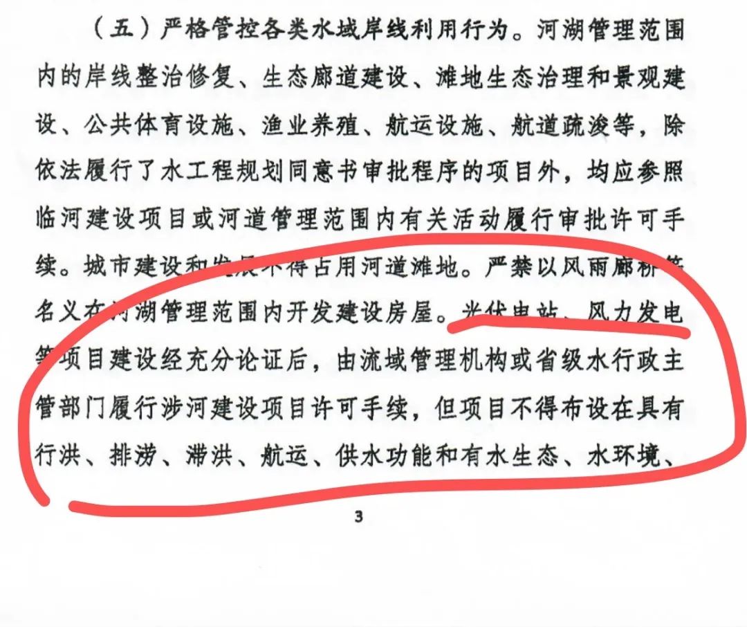 5月24日,水利部印發(fā)《水利部關(guān)于加強(qiáng)河湖水域岸線空間管控的指導(dǎo)意見》,文件明確提出:光伏電站、風(fēng)力發(fā)電等項(xiàng)目不得在河道、湖泊、水庫內(nèi)建設(shè)。在湖泊周邊、水庫庫汊建設(shè)光伏、風(fēng)電項(xiàng)目的,要科學(xué)論證,嚴(yán)格管控,不得布設(shè)在具有防洪、供水功能和水生態(tài)、水環(huán)境保護(hù)需求的區(qū)域,不得妨礙行洪通暢,不得危害水庫大壩和堤防等水利工程設(shè)施安全,不得影響河勢穩(wěn)定和航運(yùn)安全。各省(自治區(qū)、直轄市)可結(jié)合實(shí)際依法依規(guī)對各類水域岸線利用行為作出具體規(guī)定。