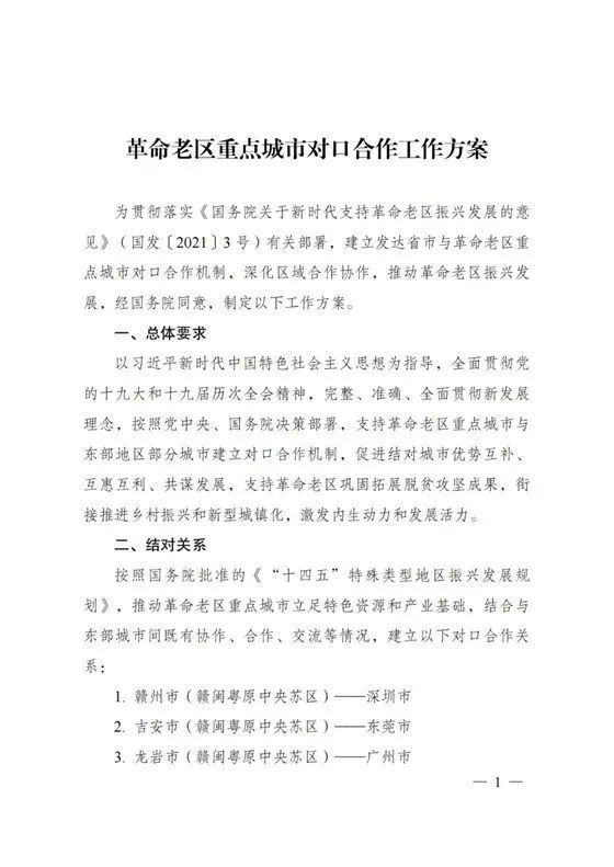 國家發(fā)展改革委關(guān)于印發(fā)《革命老區(qū)重點(diǎn)城市對(duì)口合作工作方案》的通知