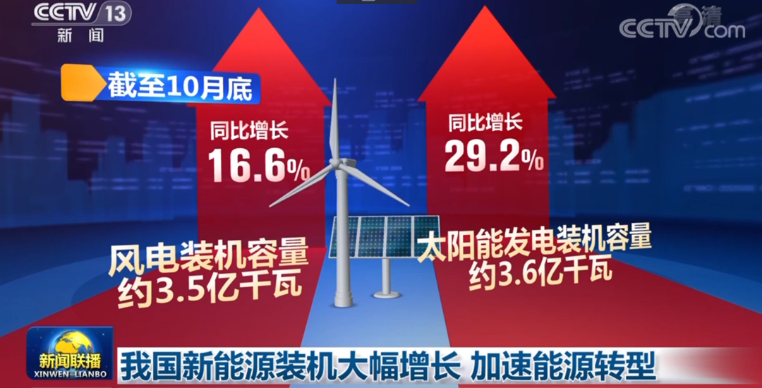2022年11月23日,根據(jù)央視新聞 新聞聯(lián)播 報(bào)道:《我國(guó)新能源裝機(jī)大幅增長(zhǎng) 加速能源轉(zhuǎn)型》。