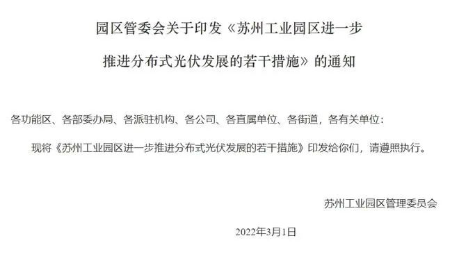 蘇州工業(yè)園區(qū)進一步推進分布式光伏發(fā)展的若干措施