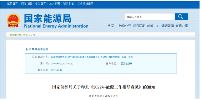 國(guó)家能源局關(guān)于印發(fā)《2022年能源工作指導(dǎo)意見》的通知