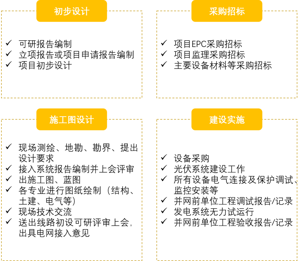 工商業(yè)光伏項(xiàng)目一般分為3個(gè)階段,第1階段進(jìn)行項(xiàng)目評(píng)估與合同簽訂,第2階段辦理備案與接入手續(xù),第3階段建設(shè)并網(wǎng)。