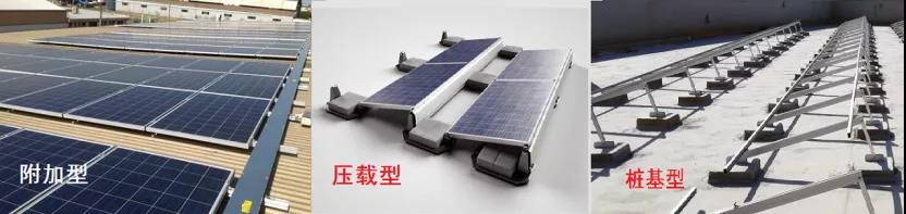 不同的屋頂安裝光伏組件的方法也不一樣,常見的安裝方式包括附加型、壓載型及樁基型。