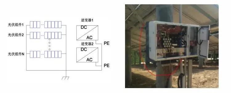 b: 逆變器的PE接地與組件支架直接連接在一起。